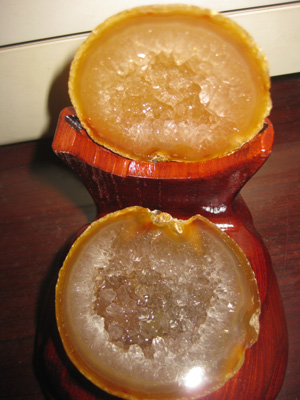 Bát tụ bảo được chọn từ những loại thạch anh thiên nhiên có kết tinh dạng hốc, thận…với tên gọi là Agate hay còn gọi tên tiếng Việt là Mã Não vì có hình giống não của loài ngựa. Mã não thường ở dạng trứng, ổ, hốc, hang bên trong phủ đầy những tinh đám thạch anh long lanh còn gọi là noãn thạch (trứng đá).